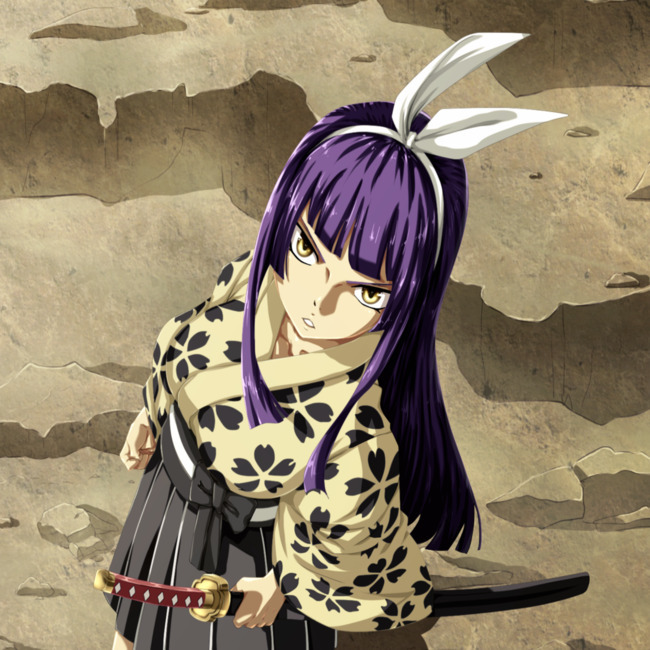 This is an image of Kagura Mikazuchi, a fictional character from the Fairy Tail manga and anime series created by Hiro Mashima.
